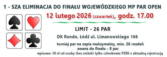 Turnieje Brydżowe WZBS Łódź – Wtorki, 17:30!
